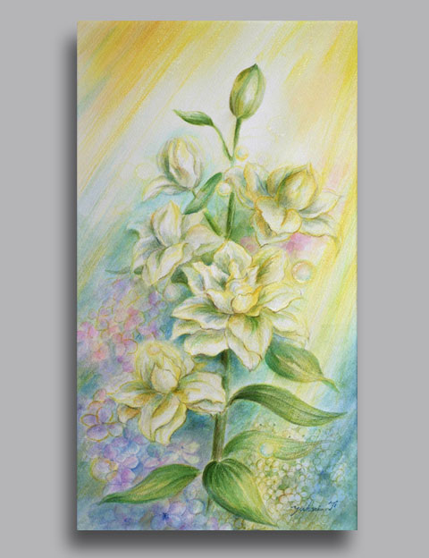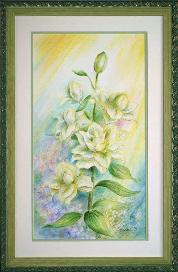 一輪の花の存在に感謝をこめ すべての命が輝きますように祈りを込めて描かせていただきました