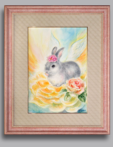 光の花に舞い降りた天使さん私はお母さんの育てたバラが大好物なのそして溢れんばかりの愛で育てられたのこれからは愛と歓びを届けにあなたのもとにいきますね。