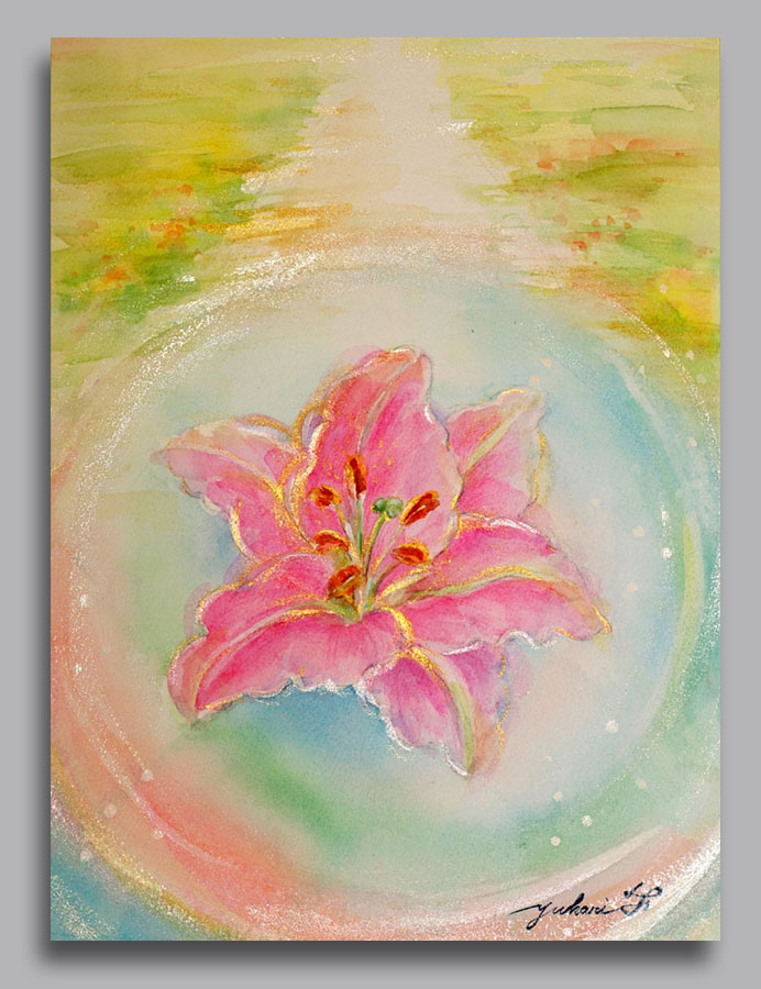 輝く道を はるか彼方から続いてきた道 今、あなたは 本来の魂に目覚め 美しく輝き ステージをあげて歩みはじめる 水彩えのぐ、アクリル 58,000円(税込) 写真.撮影 松 永 康 弘氏 額入り写真 写真で ご購入いただけます メールお問い合わせ