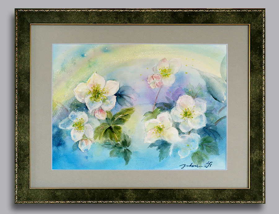 花に想いをのせて大切な人へ 厳しい寒さの中 逞しく次々と咲きはじめるクリスマスローズ 私達も 大地と繋がり 地球に抱かれて 大自然の恩恵に生かされている そして たくさん存在から見守られています 水彩えのぐ、アクリル 写真.撮影 松 永 康 弘氏 額入り写真 写真で ご購入いただけます メールお問い合わせ